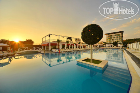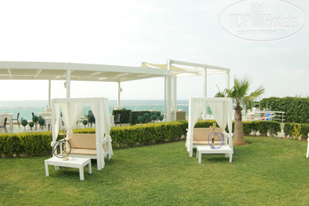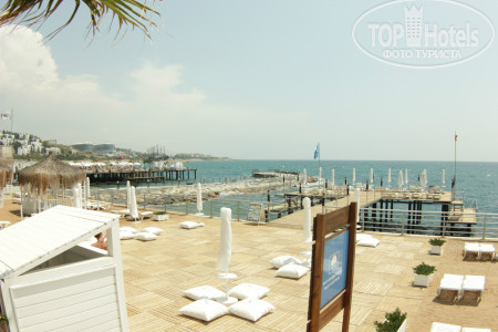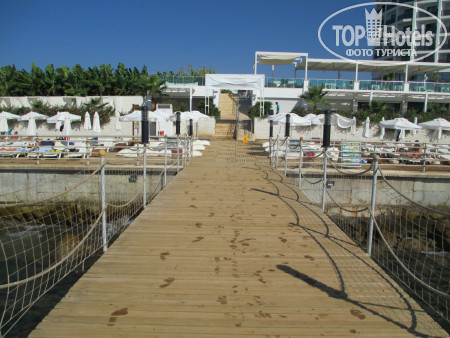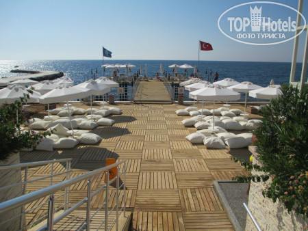 Территория отеля небольшая, но все продуманно и удобно расположено. Много мест для отдыха, релакс зон. Несколько бассейнов . Порадовал релакс бассейн с видом на море. Места у бассейнов, на пирсе и на пляже занимают с 7 утра. Вода в релакс бассейне подогревается. На пирсе есть душ, все хорошо, но доска на пирсе требует обновления.