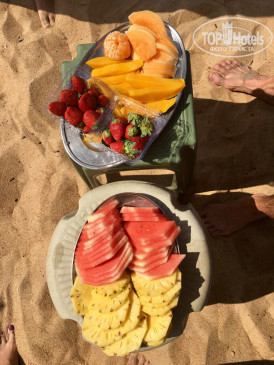 Покупаете в шейке натуральный сок или чай за 60 рупий( рублей) и место на лежаке с полотенцем и под зонтиком на весь день за вами. Индусы в шейках очень приветливые. Там же вы можете заказать приятный оздоровительный массаж. Так же у них очень вкусные блюда, мне понравились Момо с креветками.