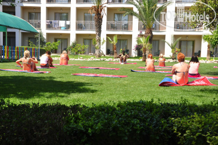 Территория: 4 корпуса, два бассейна, два бара, ресторан, миниклуб, амфитеатр, ухоженная зелень