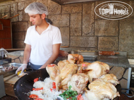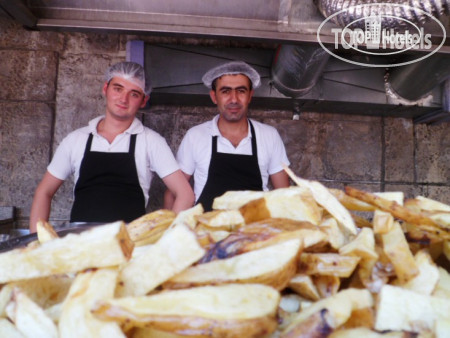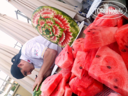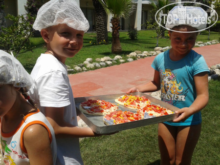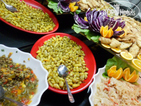 Отель годится на 3 звезды и я не рекомендую его для отдыха. Еда средне: нарезанные помидоры жесткие их невозможно есть, огурцы тоже. Горячие блюда не очень вкусные. Но десерты конечно вкусные. Повара приветливые и хорошие.