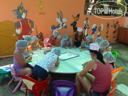 До номера никто не проводил! Номер был в старом корпусе, в которой практически нет освещения! Приходилось подниматься по мрачной лестнице, на которой можно свернуть ногу! Сам номер маленький, из освещения было три светильника, два у кровати и одни над зеркалом! На потолке ни люстры, ни лампы! Душевая кабина вся протекала , хоть и закрывалась полностью, но из под нее текло и образовывалась большая лужа! Номера менять отказывались ! В столовой грязно, очереди, посуда вся заляпанная и в налете ! Скудный ассортимент блюд , но вкусно и ни разу не отравились, что удивительно в этих условиях! Алкоголь нормальный! Анимация состояла из двух человек, которые занимались «школьной сомедеятельностью» !