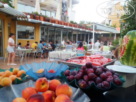 Ресторан и бары: завтрак 7:30 проблем с местами нет (готовят при тебе глазунью или омлет, и что то типа пончиков в кипящем масле, самим можно делать бутеры, специально нарезанный хлеб, сыр, масло, колбаса, собираешь бутер и кладёшь в печку, бац и готово), йогурт - густой, несколько видов сыров и колбас, каши, сухие завтраки, зелень, овощи, варенье, мёд, чай турецкий, кофемашина, разные виды делает, нет только горячего шоколада, есть ещё аппарат который что то типа соков наливает, не пробовал.